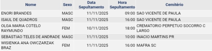 • Confira os falecimentos das últimas horas em Ponta Grossa e região 1 de dezembro de 2025