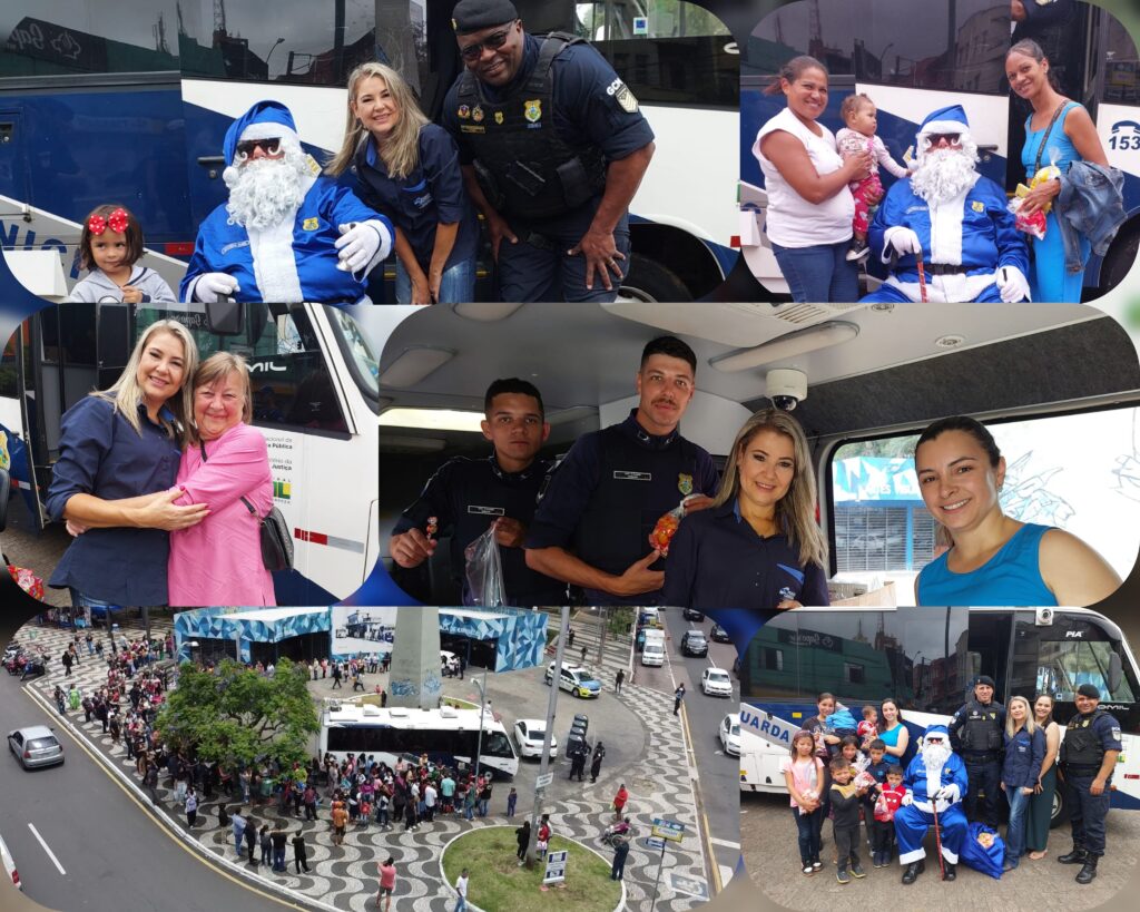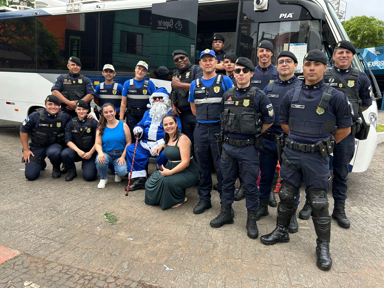 A Prefeitura de Ponta Grossa, através da Secretaria de Cidadania e Segurança Pública (SMCSP), promoveu, nesta segunda-feira (23), uma ação de natal na região central da cidade. O evento, organizado pelo departamento de Cidadania da pasta, reuniu guardas civis municipais e agentes de trânsito, que auxiliaram o ‘Guarda Noel’ na distribuição de doces para as mais de 500 crianças que compareceram à praça Barão do Rio Branco.