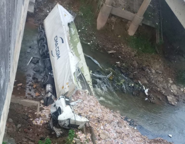 Caminhão cai de ponte em Ponta Grossa e motorista não resiste aos ferimentos