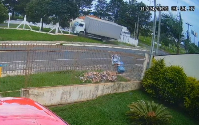 Na manhã de terça-feira (01/04), um caminhão Volkswagen 13-180 perdeu os freios e invadiu o Parque Monteiro Lobato, em Ponta Grossa. O acidente ocorreu na Rua João Schaia, no bairro Jardim Carvalho, e foi registrado por câmeras de segurança.