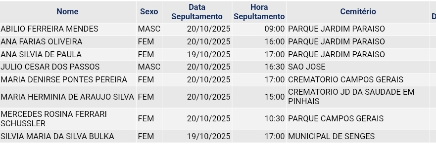 • Confira os falecimentos das últimas horas em Ponta Grossa e região 20 de outubro de 2025