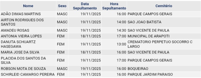 • Confira os falecimentos das últimas horas em Ponta Grossa e região 3 de dezembro de 2025