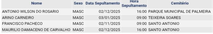 • Confira os falecimentos das últimas horas em Ponta Grossa e região 2 de dezembro de 2025