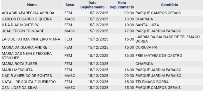 • Confira os falecimentos das últimas horas em Ponta Grossa e região 19 de dezembro de 2025