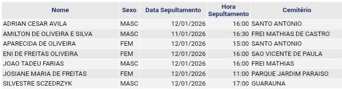 • Confira os falecimentos das últimas horas em Ponta Grossa e região 10 de fevereiro de 2026