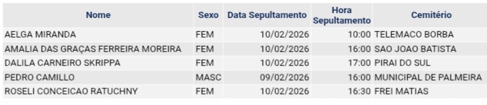 • Confira os falecimentos das últimas horas em Ponta Grossa e região 10 de fevereiro de 2026