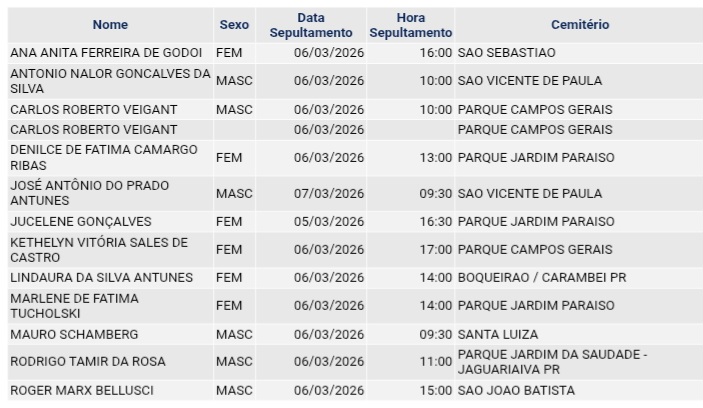 • Confira os falecimentos das últimas horas em Ponta Grossa e região 6 de março de 2026