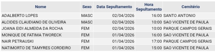 • Confira os falecimentos das últimas horas em Ponta Grossa e região 1 de abril de 2026