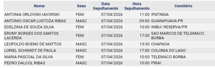 • Confira os falecimentos das últimas horas em Ponta Grossa e região 15 de abril de 2026