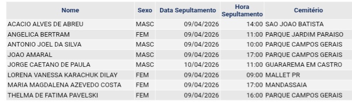 • Confira os falecimentos das últimas horas em Ponta Grossa e região 15 de abril de 2026