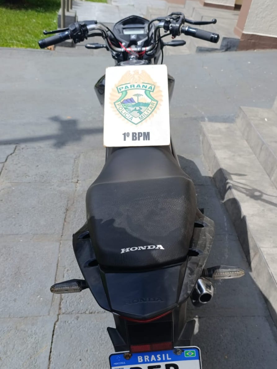 Na manhã desta terça-feira (14), a Polícia Militar do Paraná recuperou uma motocicleta com registro de furto no bairro Rocio I, no município de Palmeira. Durante a ação, um menor de idade foi apreendido por estar conduzindo o veículo.