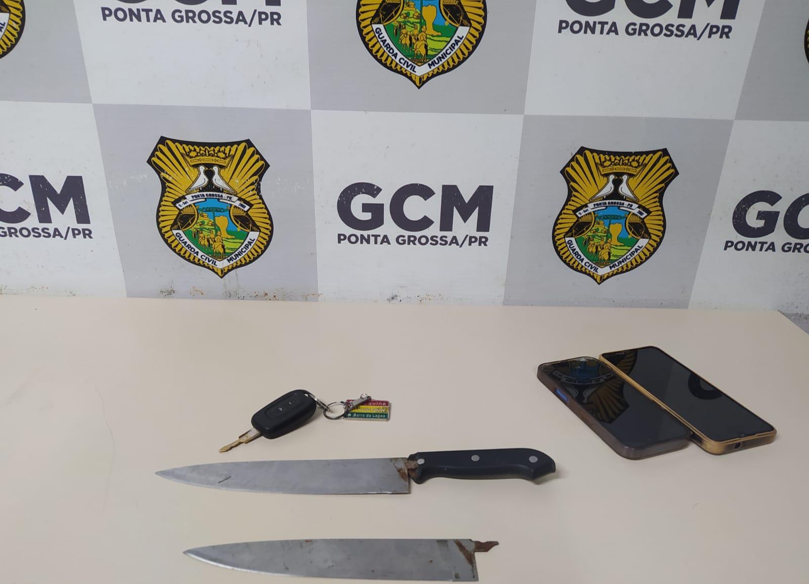 Com as características repassadas, a GCM iniciou patrulhamento e localizou um veículo idêntico nas imediações. Na abordagem, nada ilícito foi encontrado com os ocupantes durante a busca pessoal. Já na busca veicular, os agentes localizaram duas facas, possivelmente usadas no crime.