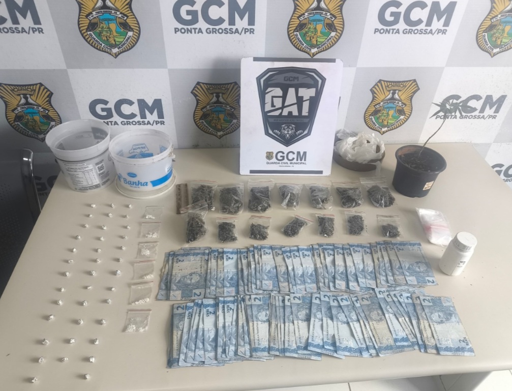 A Guarda Civil Municipal (GCM) realizou uma operação no bairro Oficinas na manhã de domingo (05), por volta das 11h30, e apreendeu uma quantidade significativa de drogas e dinheiro. A equipe GAT recebeu uma denúncia de intensa movimentação em área de mata, com possível tráfico de entorpecentes.