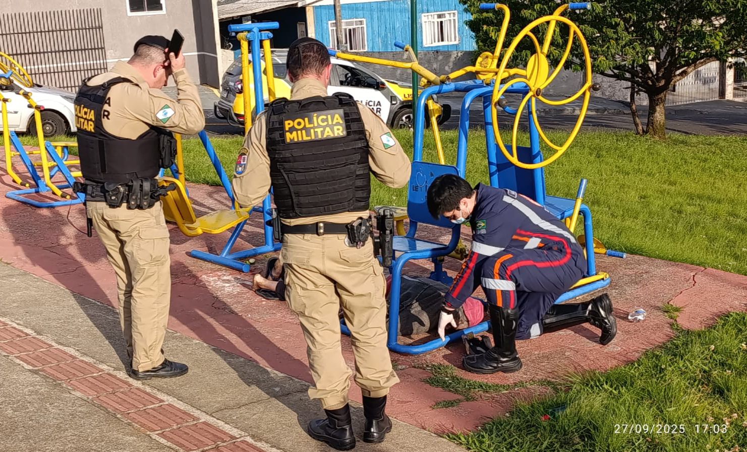 Equipes da Polícia Militar estiveram na Rua Fernando Machado, onde fica a praça, para isolar a área e preservar a cena até a chegada das equipes especializadas. O Serviço de Atendimento Móvel de Urgência (SAMU) confirmou o óbito, enquanto a Polícia Científica foi acionada para realizar a perícia.