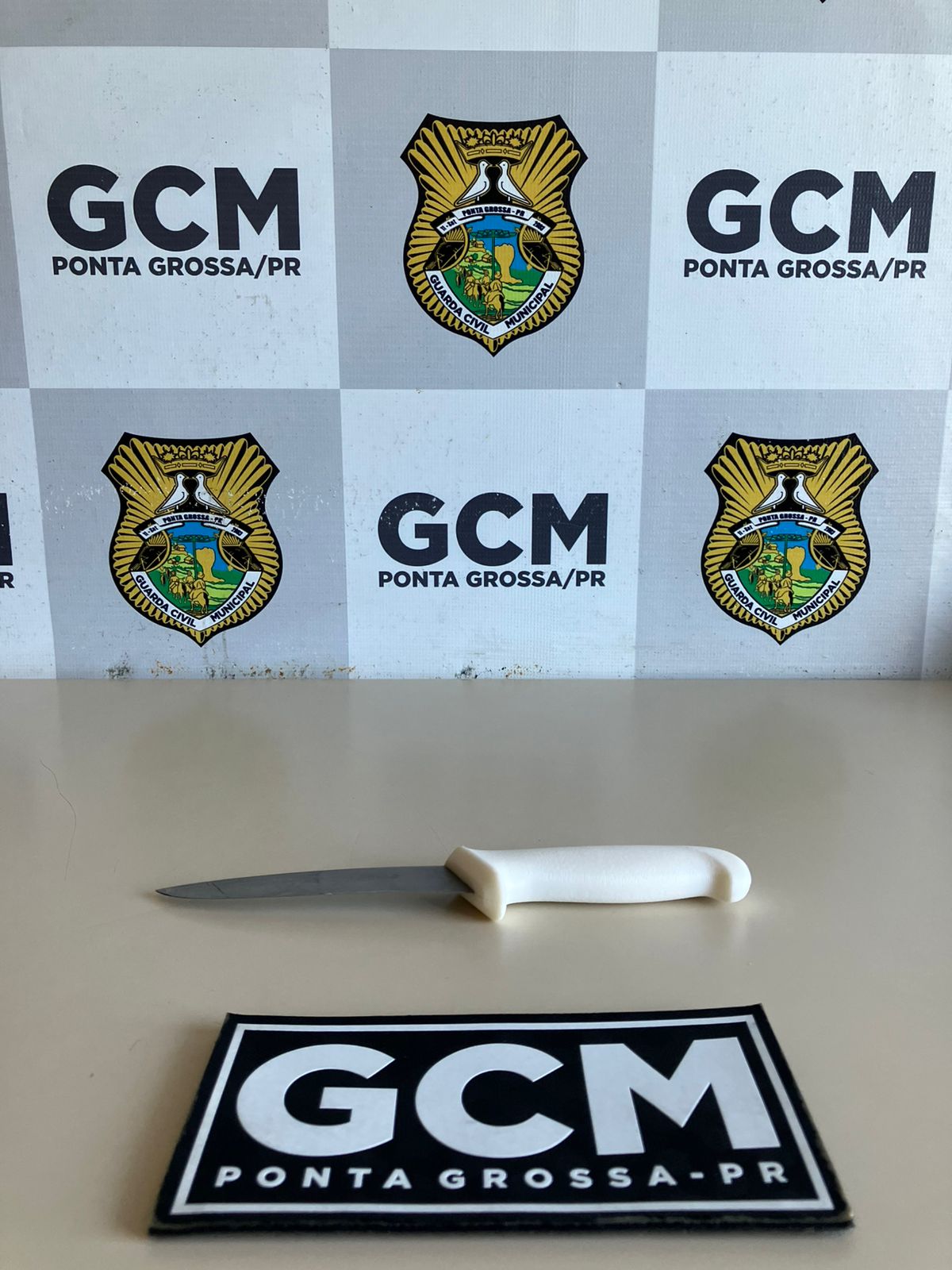 A equipe da Guarda Civil Municipal foi acionada e localizou o cidadão em seu quarto. Ele confessou ter empunhado a faca, alegando que o fez apenas para assustá-la. No entanto, imagens das câmeras de segurança do local mostraram o indivíduo desferindo golpes de faca contra a porta do quarto e contra a geladeira da residência, causando danos materiais.
