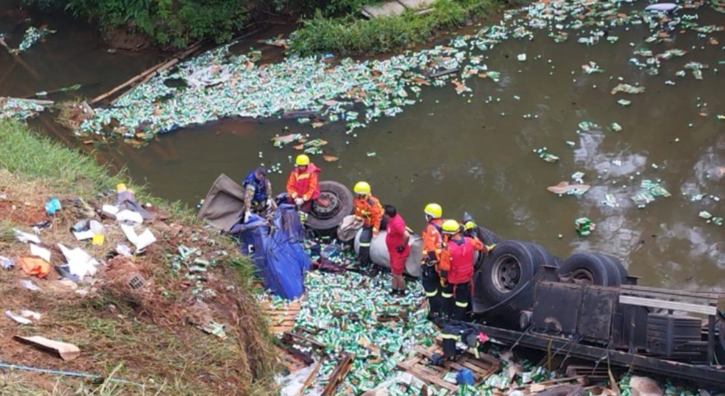 Um grave acidente de trânsito ocorreu na manhã desta segunda-feira (12) no km 386 da BR-376, no município de Imbaú. Um caminhão carregado com cervejas em lata saiu do leito carroçável e caiu parcialmente no Rio Charqueada, resultando na morte do motorista de 34 anos.