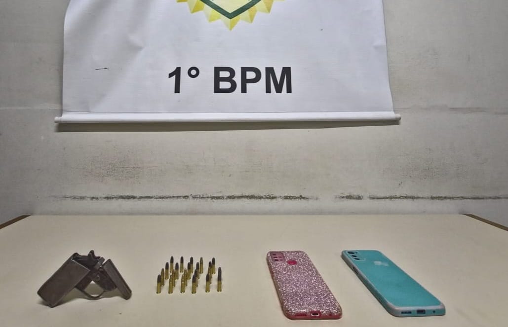 A ação teve como alvo um homem de 40 anos, investigado em um processo de homicídio. Durante as buscas, os policiais localizaram uma garrucha e munições calibre .22 no interior da casa.