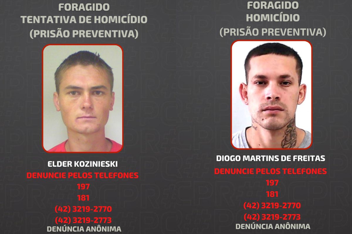 A Polícia Civil de Ponta Grossa, através do Setor de Homicídios, divulga a imagem de foragidos, alvos de mandados de prisão preventiva, referentes a dois casos ocorridos no município.