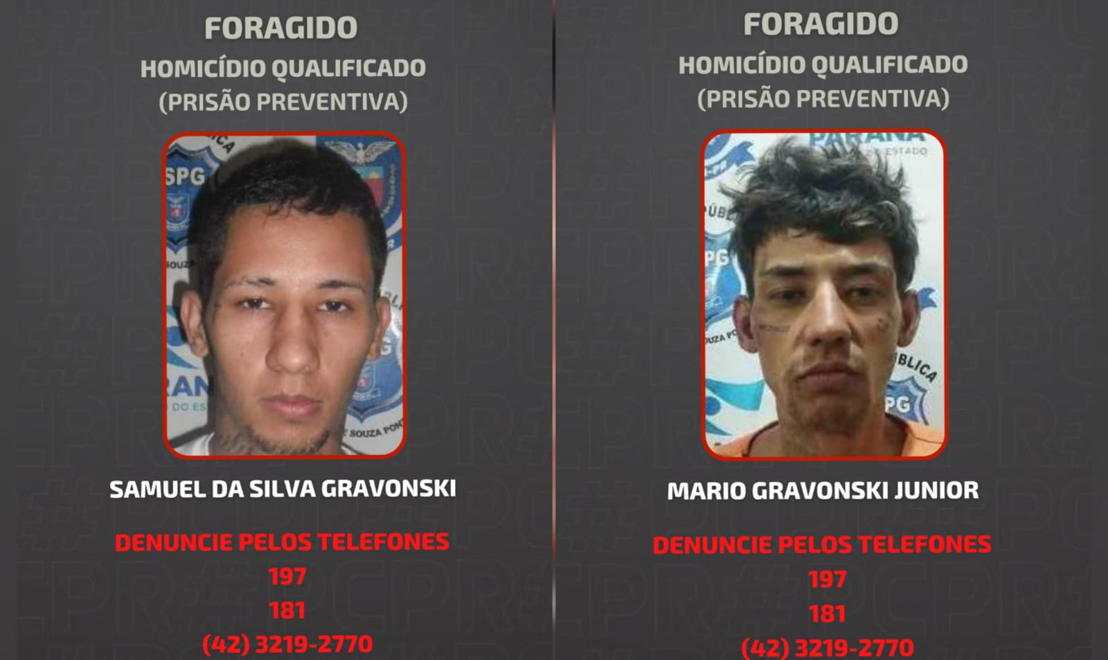 Qualquer informação sobre o paradeiro dos suspeitos pode ser enviada para o WhatsApp Denúncia (42) 3219-2770 ou pelo 190. A polícia pede ajuda da população para capturar os irmãos e esclarecer o crime. 🚨