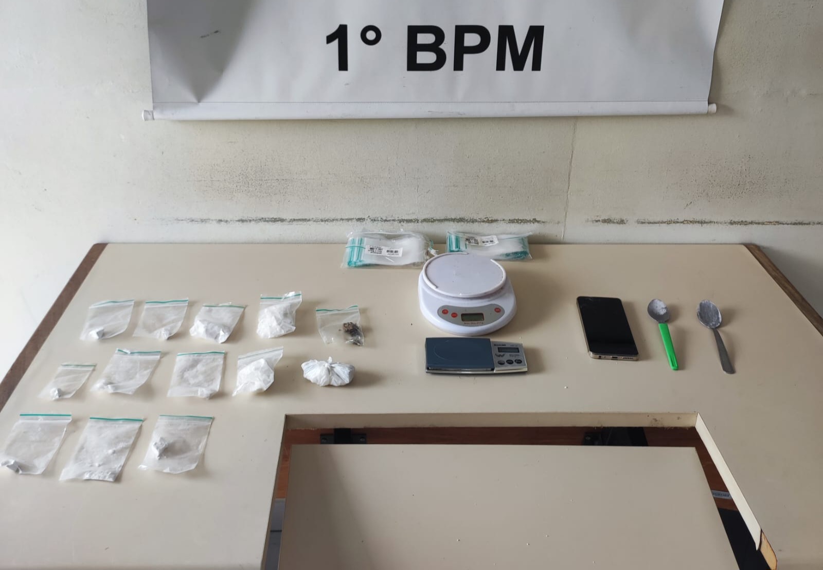 Na sequência, a equipe realizou buscas no interior da residência e encontrou mais entorpecentes escondidos dentro de um colchão. Além disso, em uma cômoda, foram localizadas porções de substância análoga à maconha, duas balanças de precisão e embalagens plásticas utilizadas para fracionamento e comércio de drogas.