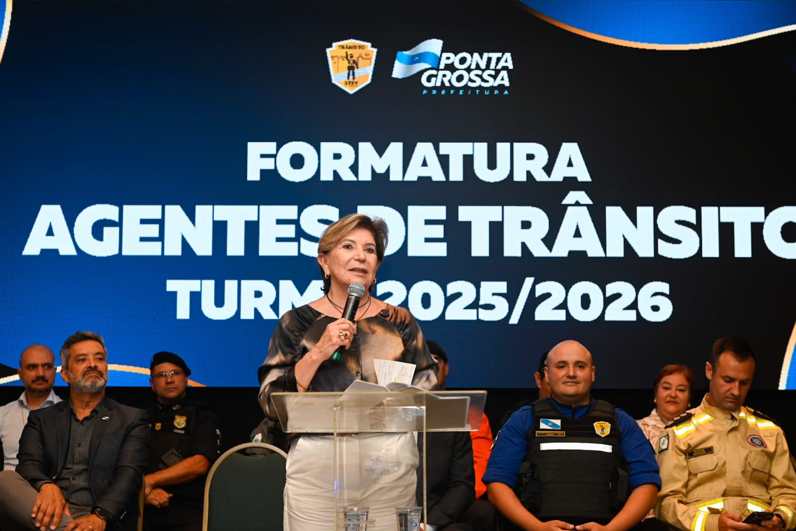 A Prefeitura de Ponta Grossa, por meio da Secretaria Municipal de Cidadania e Segurança Pública, realizou a formatura de 25 novos agentes de trânsito nesta terça-feira (24). O evento contou com a presença da prefeita Elizabeth Schmidt, do secretário de Cidadania e Segurança Pública, Guilherme Rangel, além de representantes do Legislativo, das forças de segurança e de diversas outras autoridades.