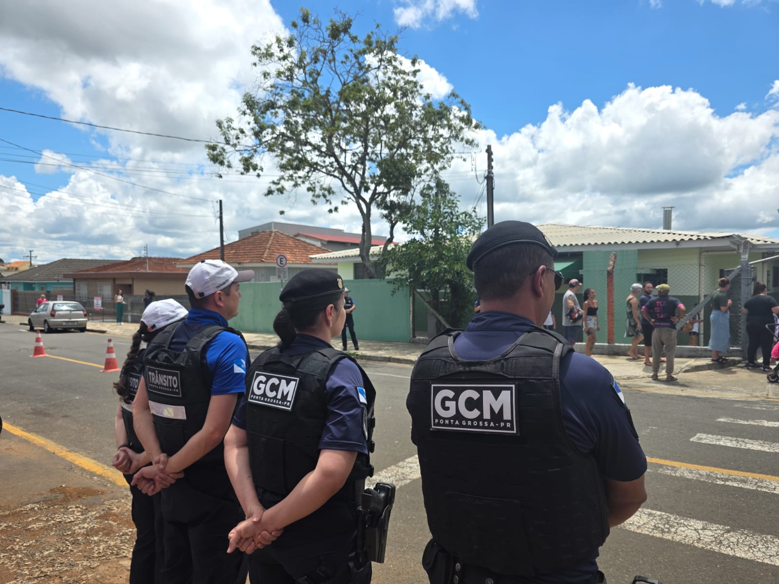 A Secretaria Municipal de Cidadania e Segurança Pública marcou presença na volta às aulas da rede municipal de ensino, realizada nesta quinta-feira (5). Durante todo o dia, equipes da Guarda Civil Municipal de Ponta Grossa (GCMPG) e da Superintendência de Trânsito e Segurança Viária (STSV) atuaram nos horários de entrada e saída dos alunos, reforçando a segurança e promovendo ações de orientação junto à comunidade escolar.