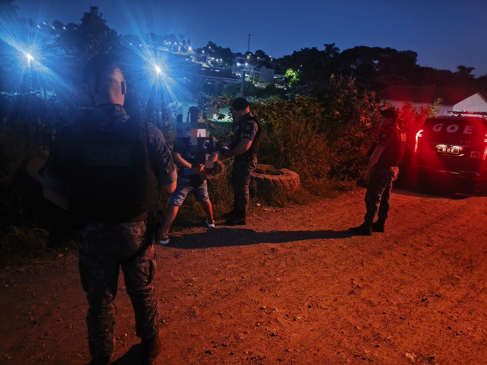 Com base nas informações repassadas, os agentes realizaram acompanhamento e conseguiram abordar um dos envolvidos, de 19 anos, após ele tentar fugir pulando muros de residências.