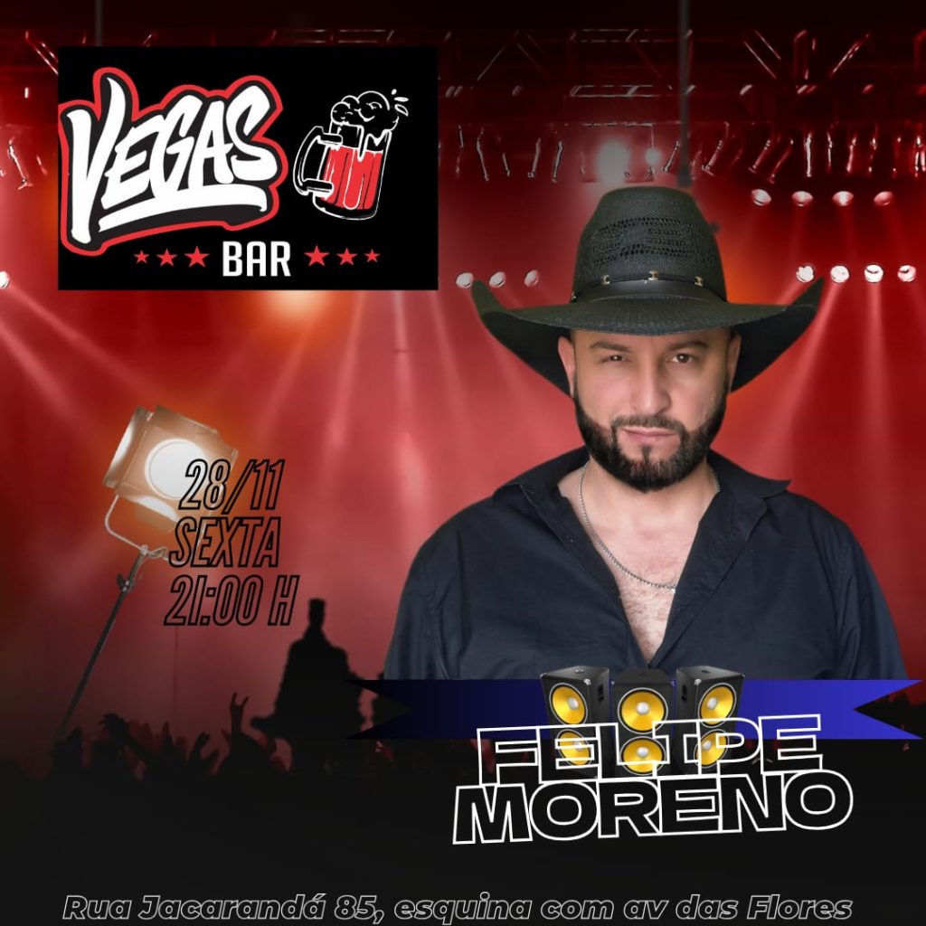 Nesta sexta-feira (28), o cantor Felipe Moreno sobe ao palco às 21h, trazendo um repertório cheio de sucessos para animar a galera.