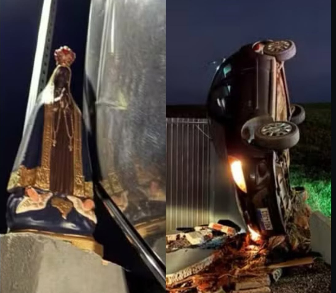 A vereadora Valéria Bosso, do município de Formosa do Oeste, no oeste do Paraná, escapou sem ferimentos de um grave acidente de trânsito ocorrido na madrugada do último sábado (6). O veículo que ela conduzia capotou e só parou após ficar encostado aos pés de uma imagem de Nossa Senhora Aparecida instalada às margens da rodovia.